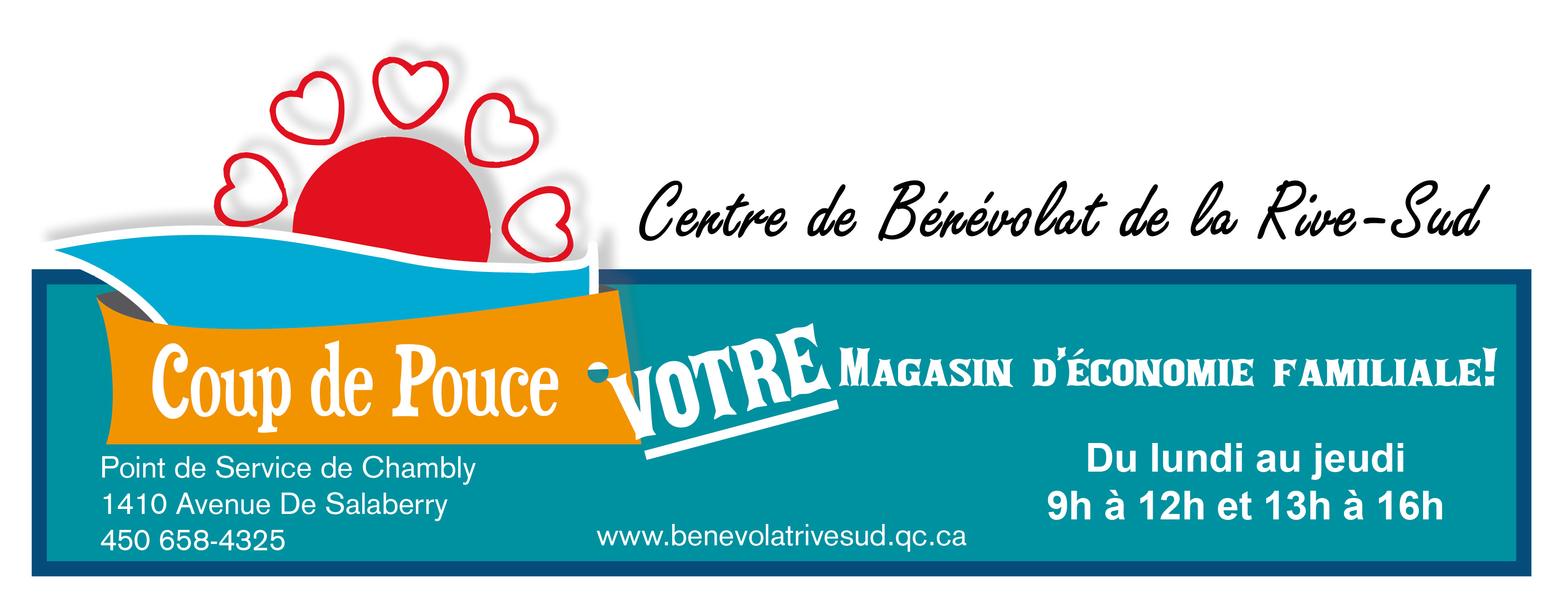 Pour la cueillette d’objets que vous voulez donner, veuillez joindre le Coup de pouce au 450 658-4325